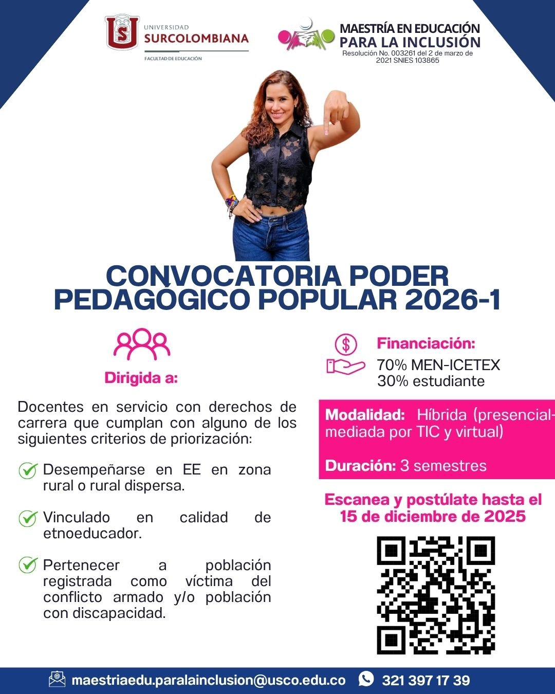 La Maestría en Educación para la Inclusión-MEI se encuentra dentro de la oferta de programas de maestría que para el periodo